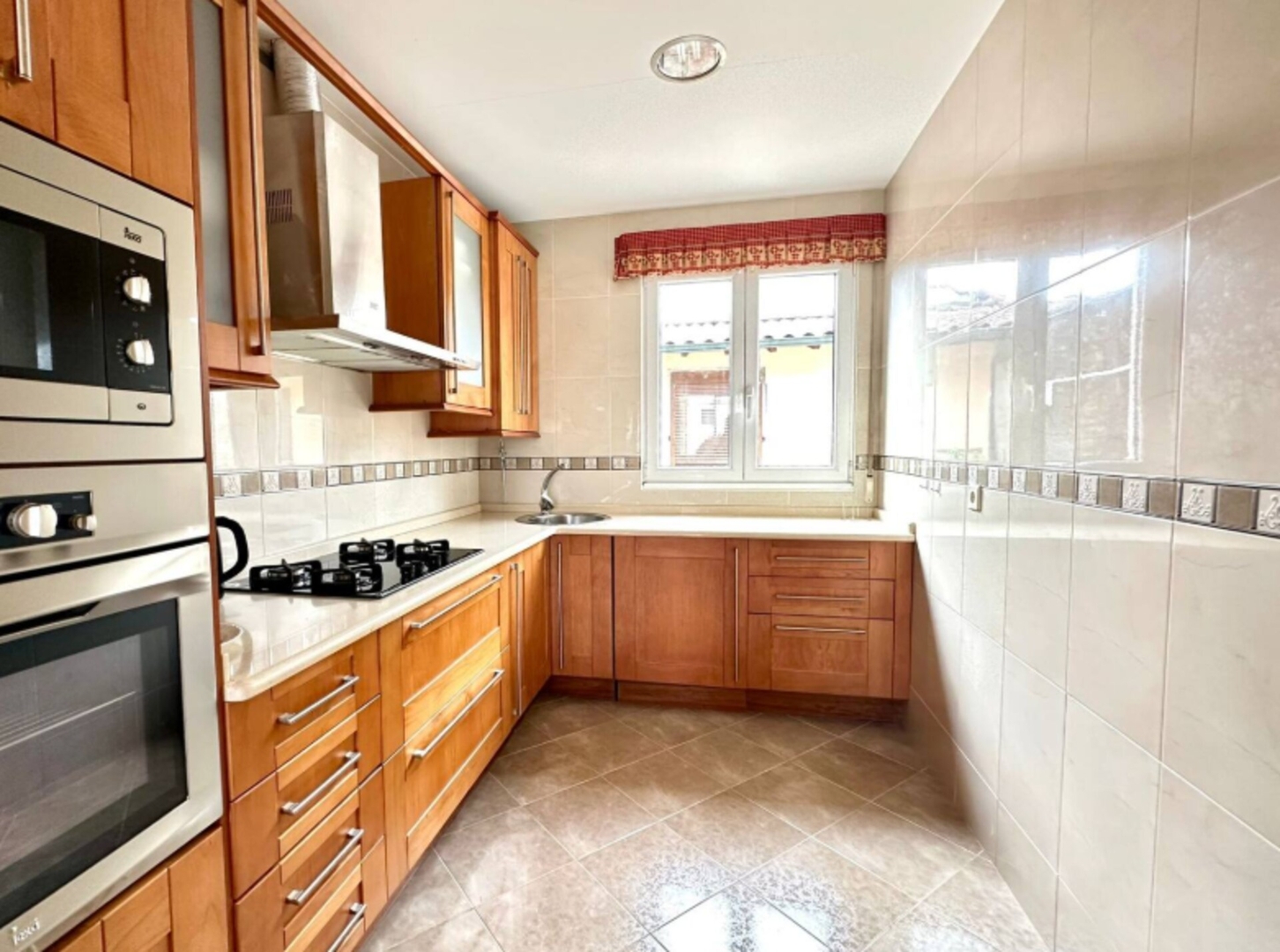 The kitchen is fully equipped, offering a functional and cozy space to prepare delicious meals and share special moments. Its practical design allows for fluid circulation as it is open to the living room.